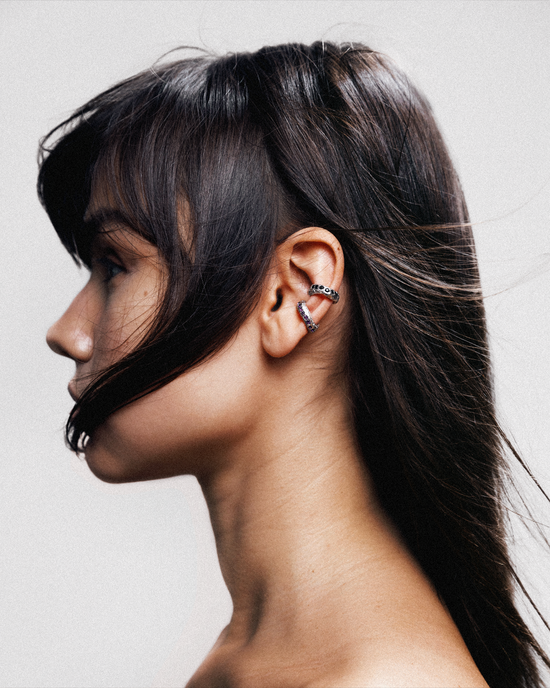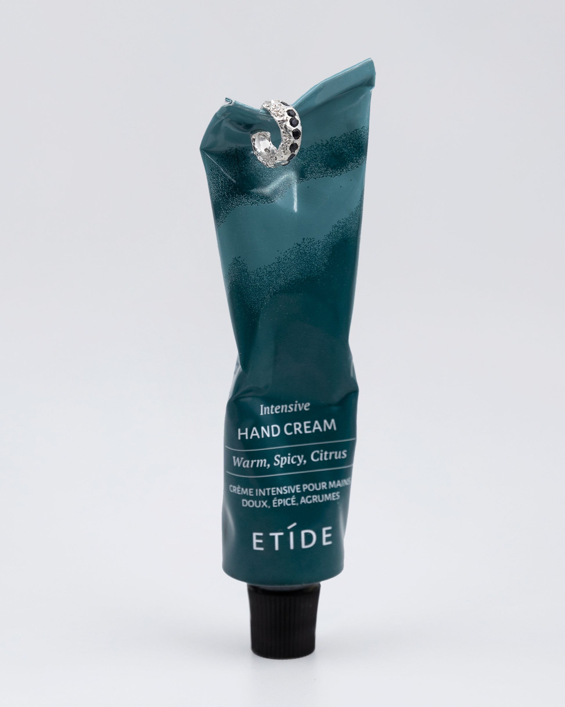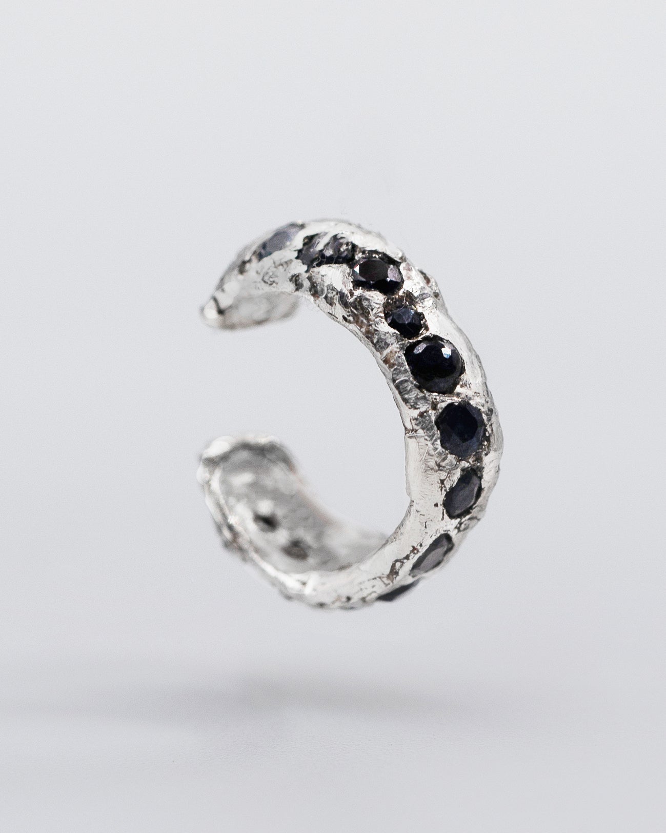 "THE SHORE" cuff handcafted in silver with 12 gemstones (London blue topaz or dark blue sapphire). Each cuff is accompanied with an Intensive hand cream from ETIDE.